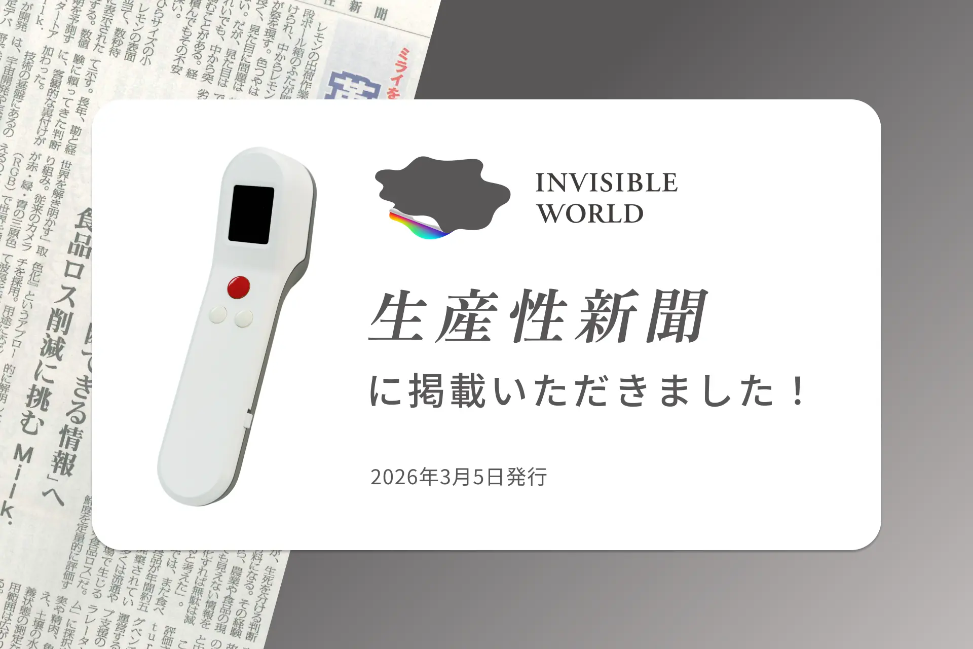 このたび、2026年3月5日発行の生産性新聞の「ミライを変える革新力」にて、私たちの「Invisible World」の取り組みが紹介されました。